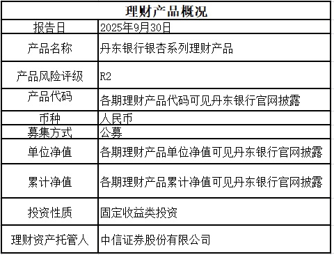 2025年三季度,我行理财产品稳定运行,现将“银杏理财”系列理财产品经营运行情况披露如下: