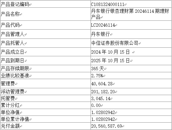 我行下列理财产品已于2025年10月15日进行到期清算兑付,根据与投资者的约定,现将到期情况进行公告,具体披露信息如下。