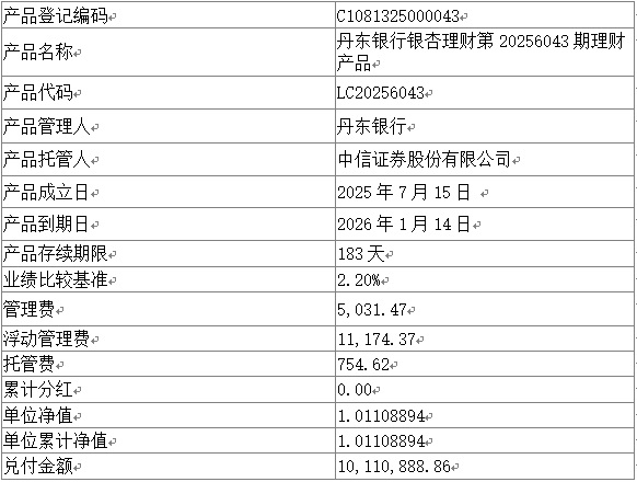 尊敬的客户: 我行下列理财产品已于2026年1月14日进行到期清算兑付,根据与投资者的约定,现将到期情况进行公告,具体披露信息如下。