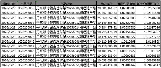 丹东银行银杏理财系列产品净值报告