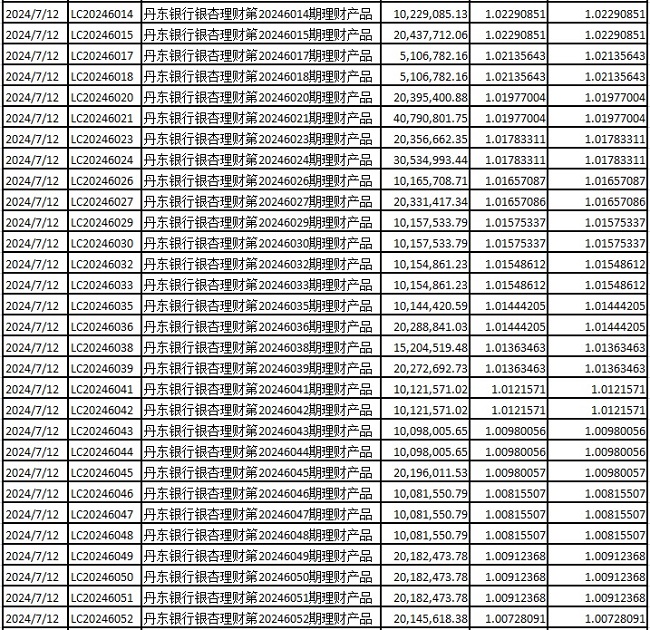 注:以上净值仅供参考,不作为产品到期兑付金额计算依据,投资者获得的最终收益以我行实际支付为准。