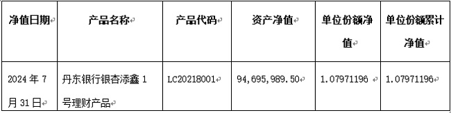 尊敬的投资者: 我行发行的以下理财产品资产净值与份额净值如下:
