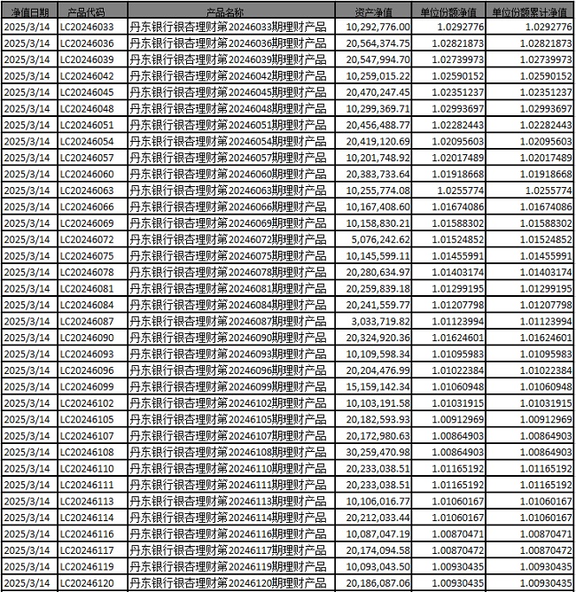 尊敬的投资者: 我行发行的以下理财产品资产净值与份额净值如下: