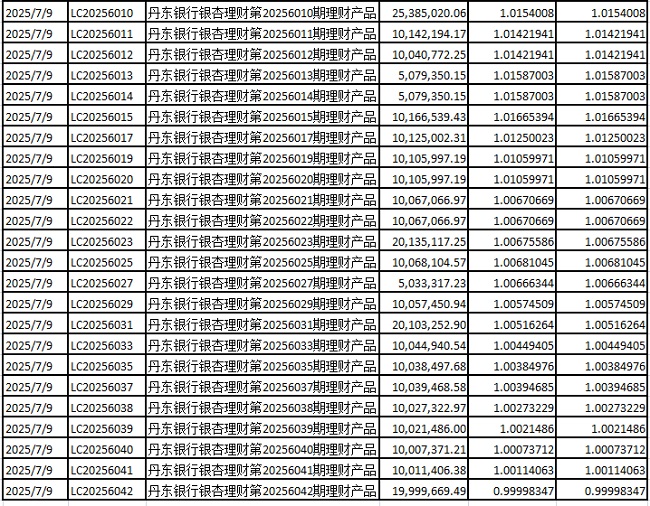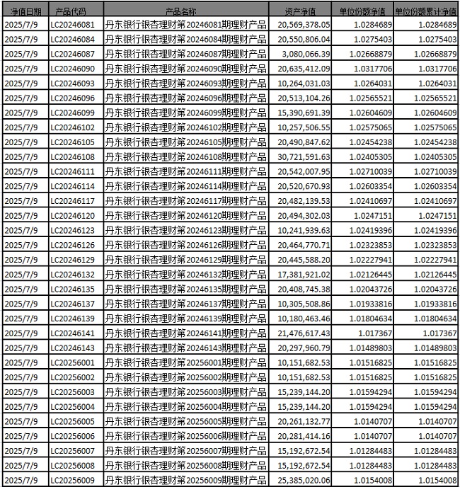 尊敬的投资者: 我行发行的以下理财产品资产净值与份额净值如下: