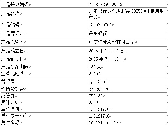 尊敬的客户: 我行下列理财产品已于2025年7月16日进行到期清算兑付,根据与投资者的约定,现将到期情况进行公告,具体披露信息如下。