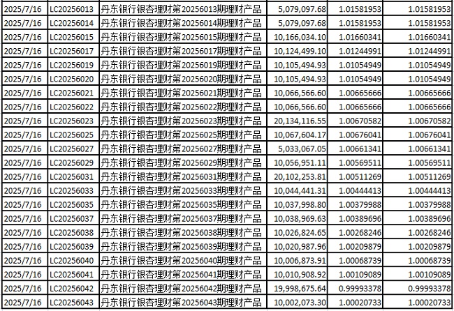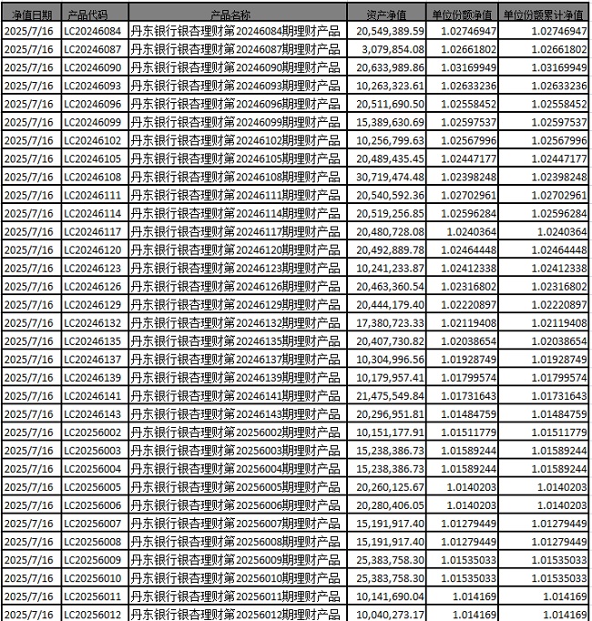 尊敬的投资者: 我行发行的以下理财产品资产净值与份额净值如下:
