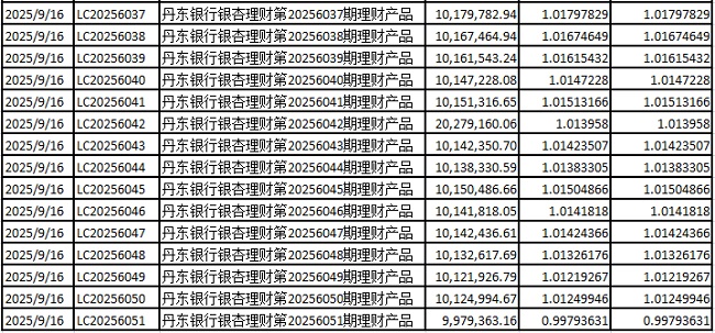 尊敬的投资者: 我行发行的以下理财产品资产净值与份额净值如下: