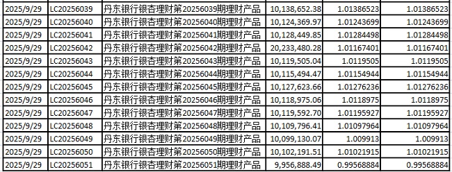 丹东银行股份有限公司 2025年9月30日