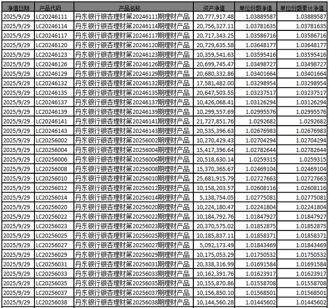 尊敬的投资者: 我行发行的以下理财产品资产净值与份额净值如下: