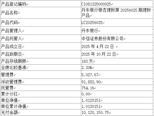 我行下列理财产品已于2025年10月22日进行到期清算兑付,根据与投资者的约定,现将到期情况进行公告,具体披露信息如下。