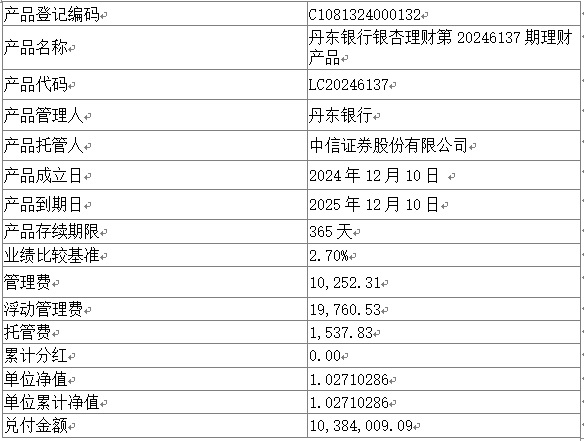 尊敬的客户: 我行下列理财产品已于2025年12月10日进行到期清算兑付,根据与投资者的约定,现将到期情况进行公告,具体披露信息如下。