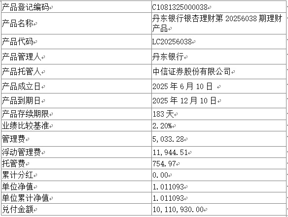 尊敬的客户: 我行下列理财产品已于2025年12月10日进行到期清算兑付,根据与投资者的约定,现将到期情况进行公告,具体披露信息如下。