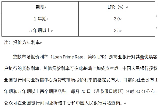 全国银行间同业拆借中心LPR公布价